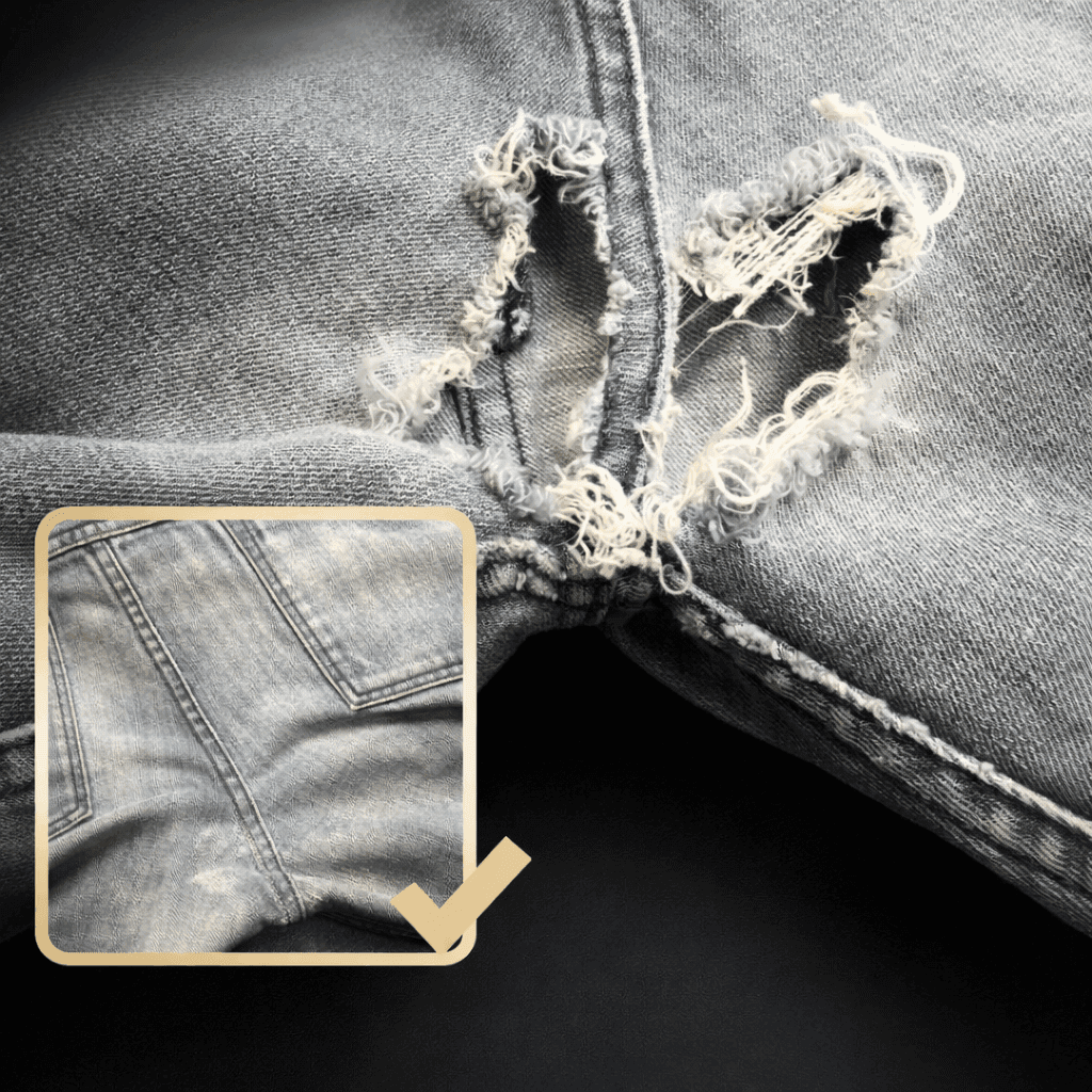 Denim darning is a specialized repair technique used to restore holes, tears, and worn areas by weaving new thread directly into the original denim. The fabric is reinforced from within while preserving the character, fading, and texture that make the jeans unique. (This service is focused exclusively on denim — most often designer/premium jeans or just well-loved favorites that are worth preserving rather than replacing.)